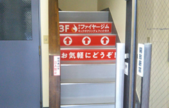環八通りと交差する右手のビル3階が『ネオファイヤージム』です。ビル入口から入り、階段で3階までお上がり下さい。
